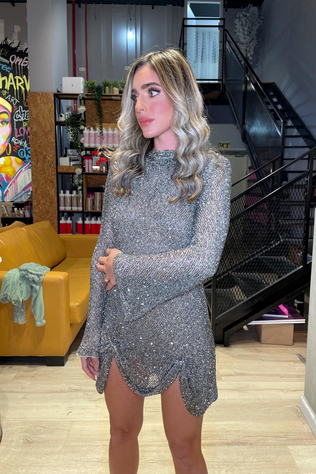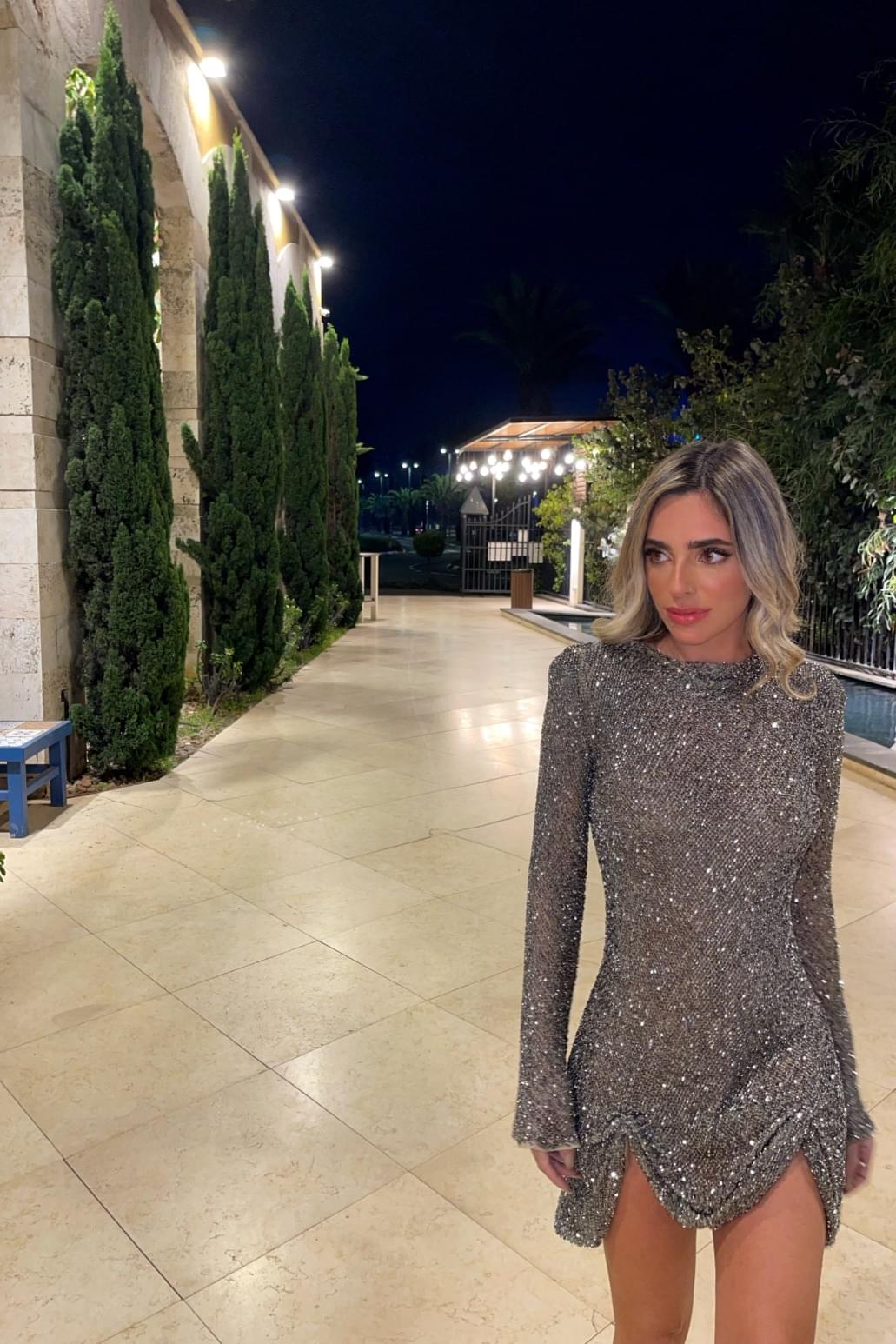 שמלת ערב קצרה מבד חרוז