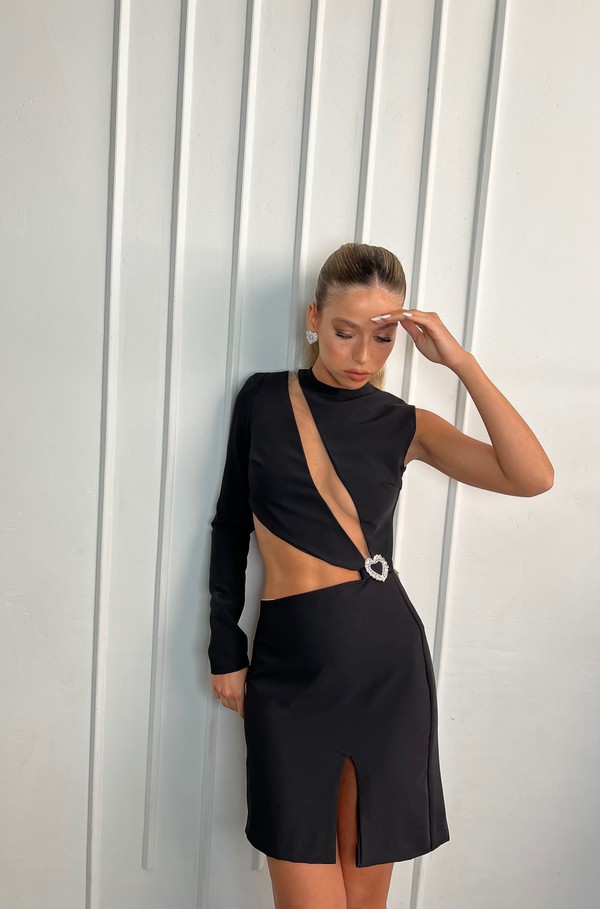 שמלה שחורה עם חיתוכים