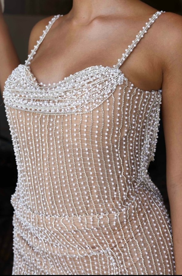 שימלה לבנה מחורזת עם אבני סברובסקי