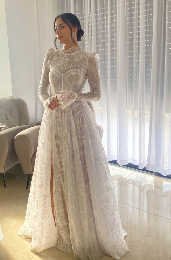 שמלת כלה מבד תחרה קלאסית ואצילית ברמוות *מחיר מיוחד ל2 שמלות כלה ב 11,000₪*