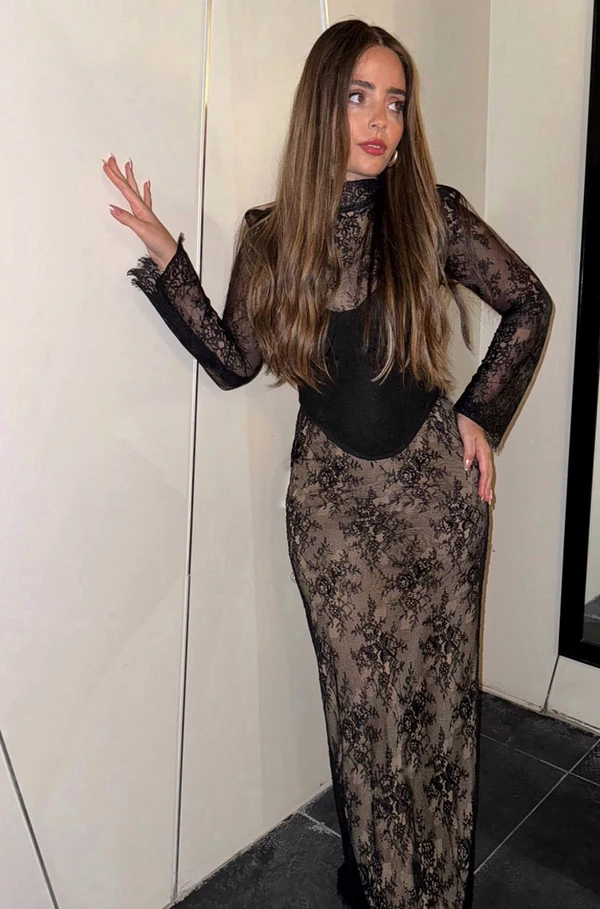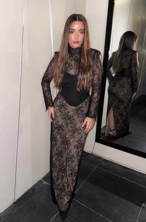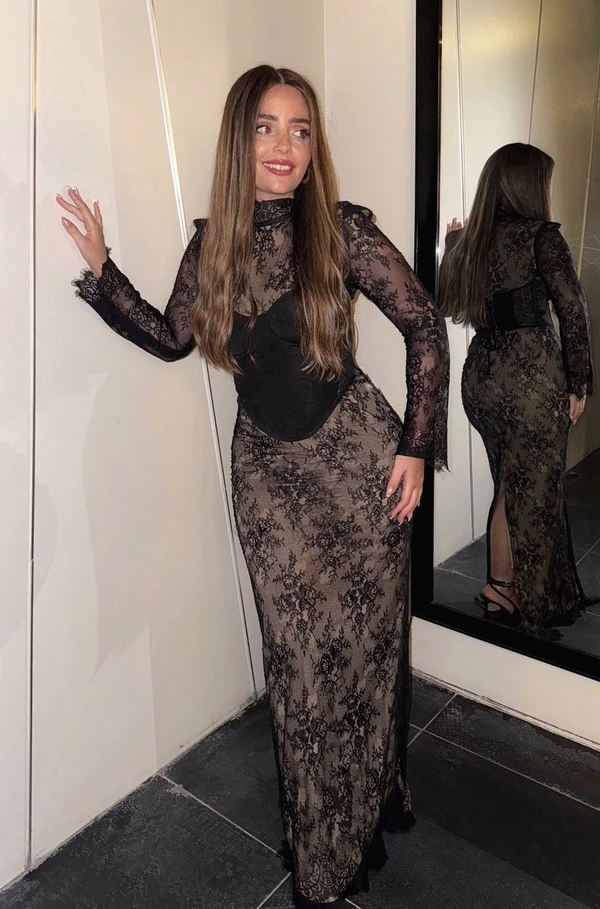 שמלה תחרה עם מחוך חיצוני , שסע עמוק מאחורה