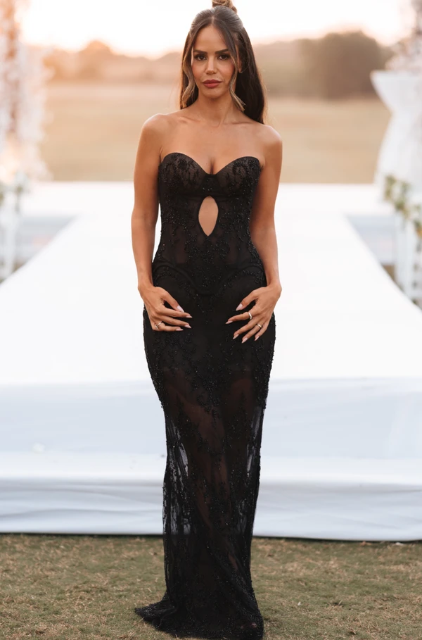 שמלה הצגה שחורה מדויקת גזרה נדירה ומחמיאה