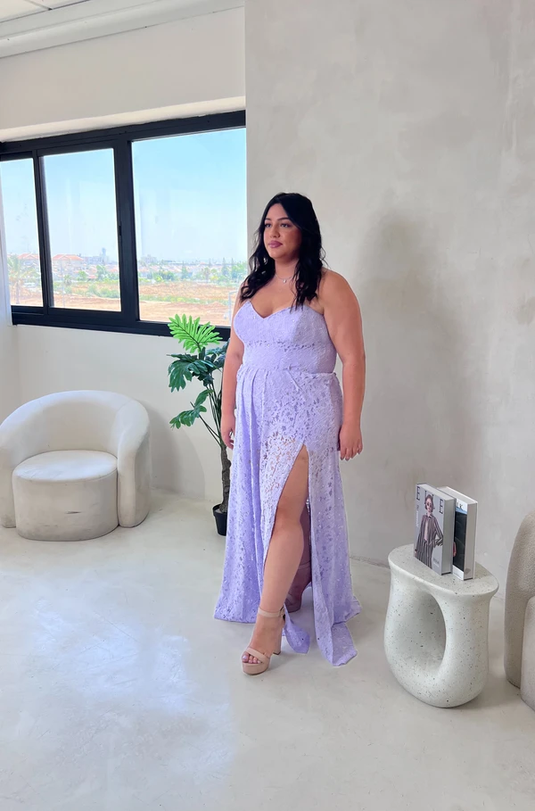 דגם מחוך בד תחרה משובץ אופציה להוסיף שרוולים