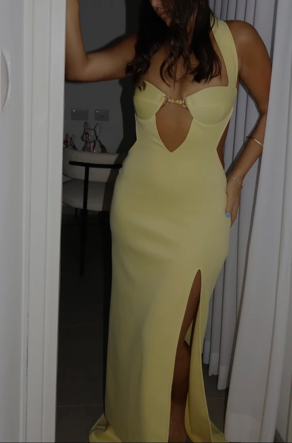 שמלת ערב צהוב בננה , מושלמת על הגוף