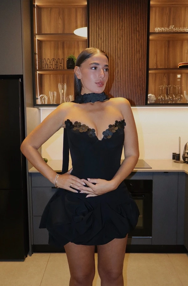 שמלת מחוך ארוך מושלמת על הגוף ובתוספת פרחים