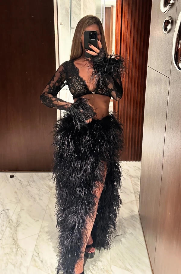 חצאית נוצות עם פתח ברגל בשילוב תחרה✨ קיימת גם במיני. ניתן לשלב טופים שונים, בגזרות שונות לפי מידת הצורך✨