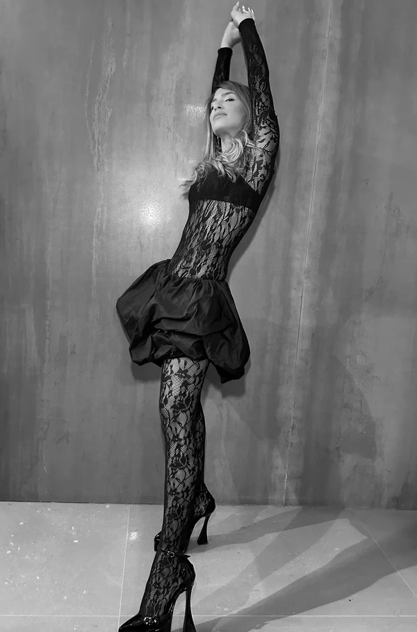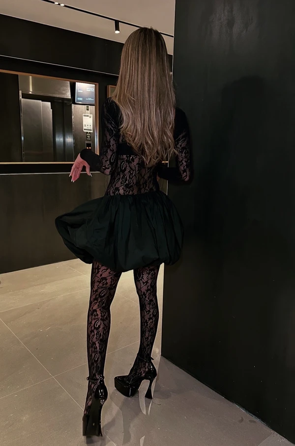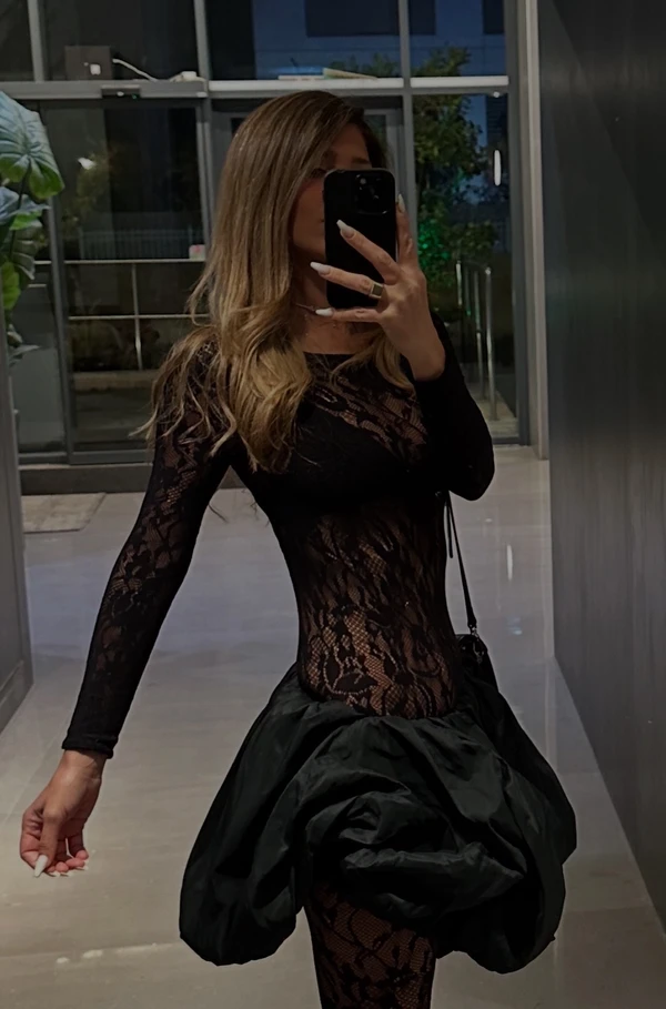 אוברול תחרה שחור בשילוב חצאית בלון✨