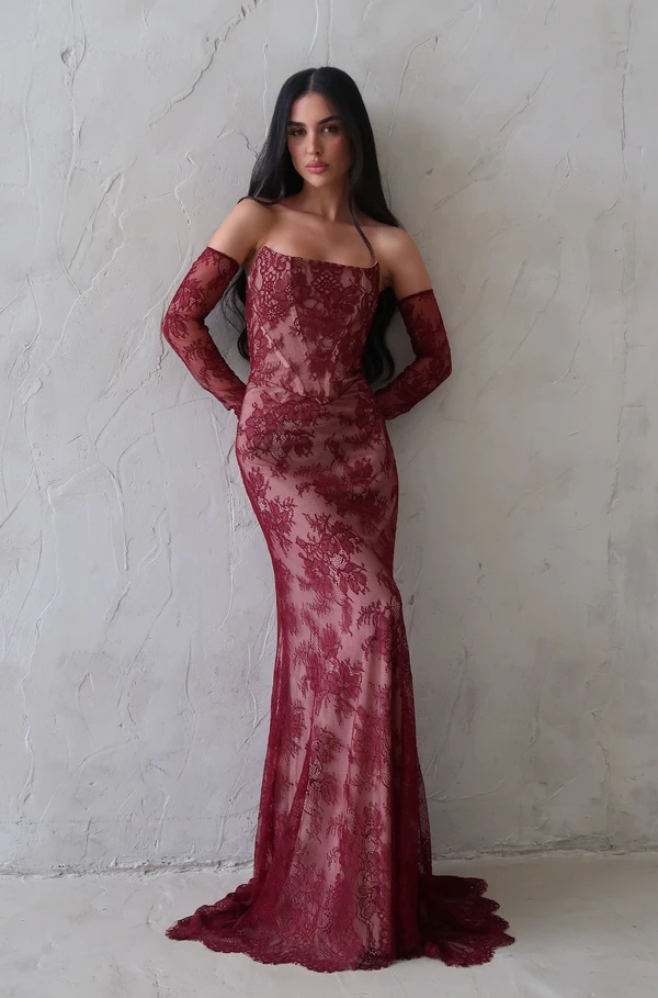 שמלה בורדו היסטרית בטירוף מחמיאה לגוף מגיעה עם צוקר פרח מושלם