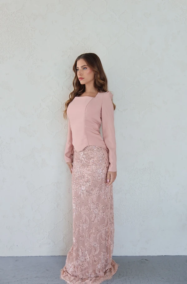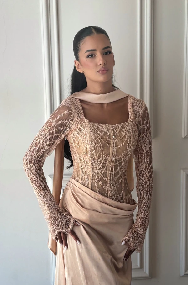 שמלת מחוך צנועה בשילוב תחרה עדינה