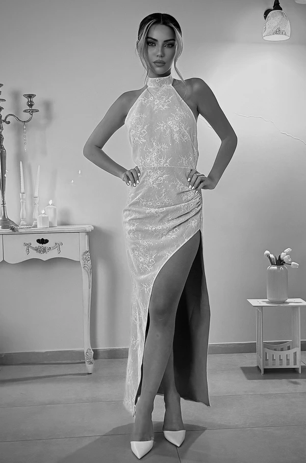 שמלת קולר עם גב פתוח שמלה שנייה קלאסית מבד תחרה
