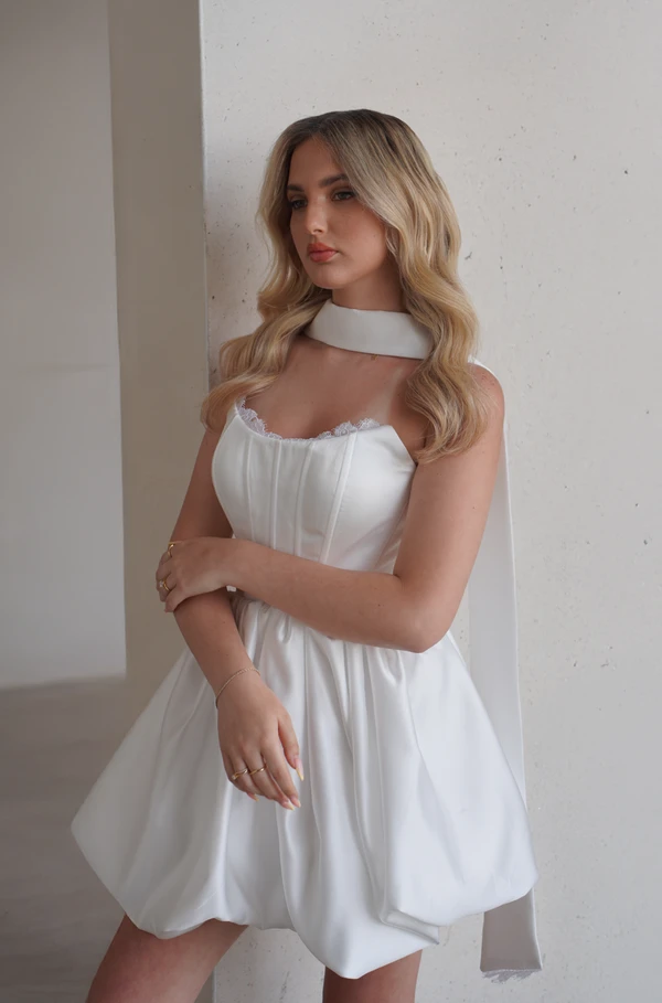 BLACK FRIDAY 10% הנחה על השכרת כל השמלות בחנות עד ה2.12.25! שמלת כלה מיני, יכולה להתאים כשמלה שניה/שלישית. ניתן להתאים למידות XS,S,M