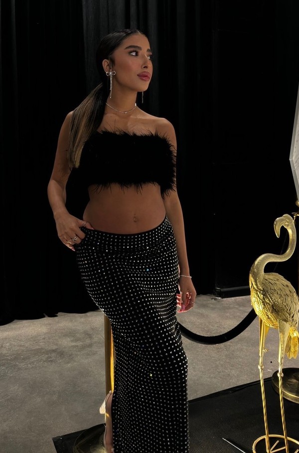 טופ וחצאית מאקסי בשילוב אבנים, ניתן לשלב חלקים שונים תואמים בחלק העליון, קיים גם בחליפת מכנס✨