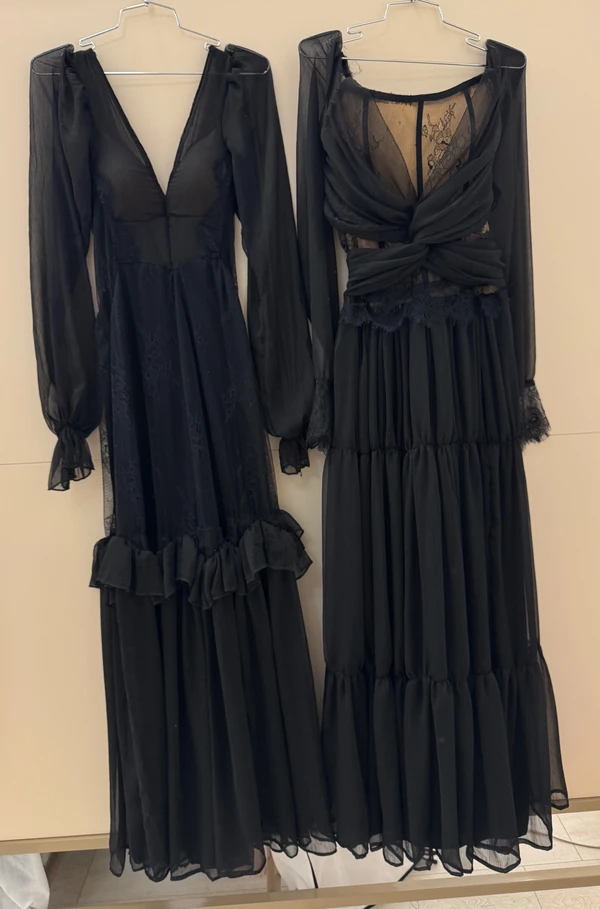 שמלות ערב מבד שיפון מקומט בשילוב תחרה