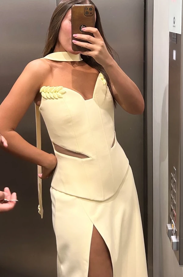 חליפה של מחוך וחצאית עם שסע קיימת חצאית קצרה גם