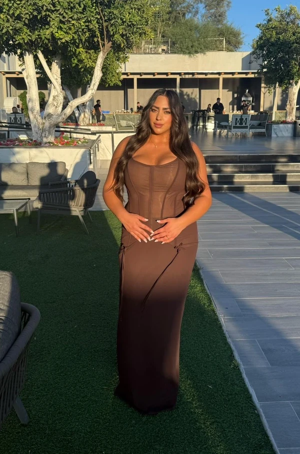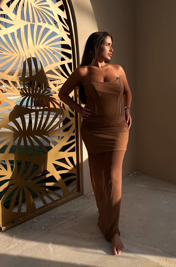 שמלת ערב מחוך עם מחשוף בגוון חום כהה