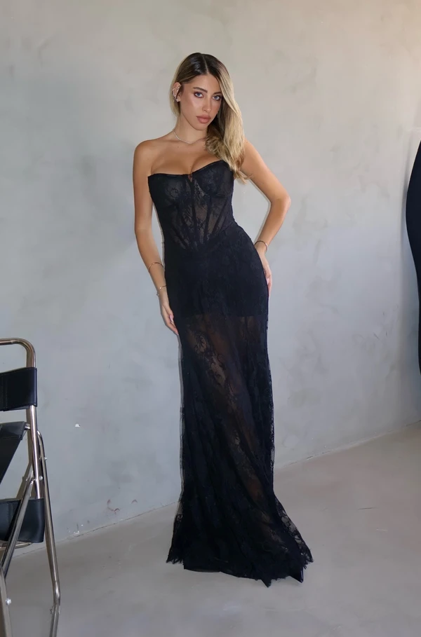 שמלת ערב תחרה היסטרית עם בטנה לבחירה: מכנסון, חצאית ארוכה/קצרה .