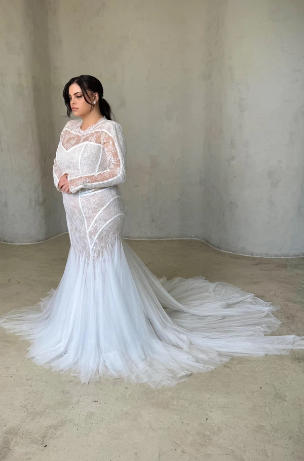דגם ״טרוסא״ שילוב תחרה מחורזת וטול חלבי