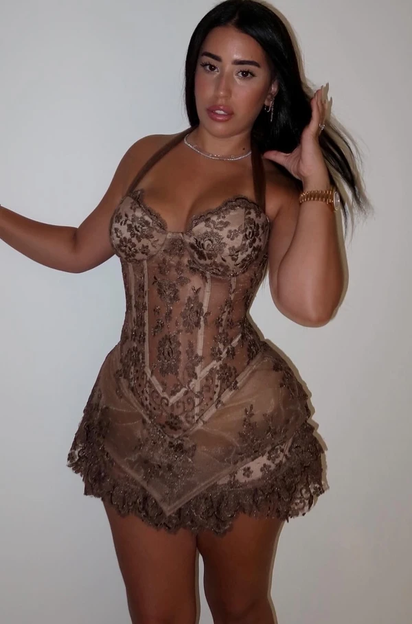שמלת תחרה עבודת יד מחוך עם מלמלות מהממת וסקסית