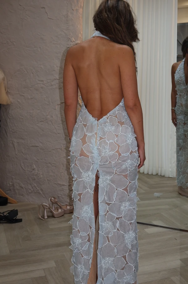 שמלת מקסי תכלת 2 חלקים, קיימת אופציה לחלק עליון אחר מבד מחטב
