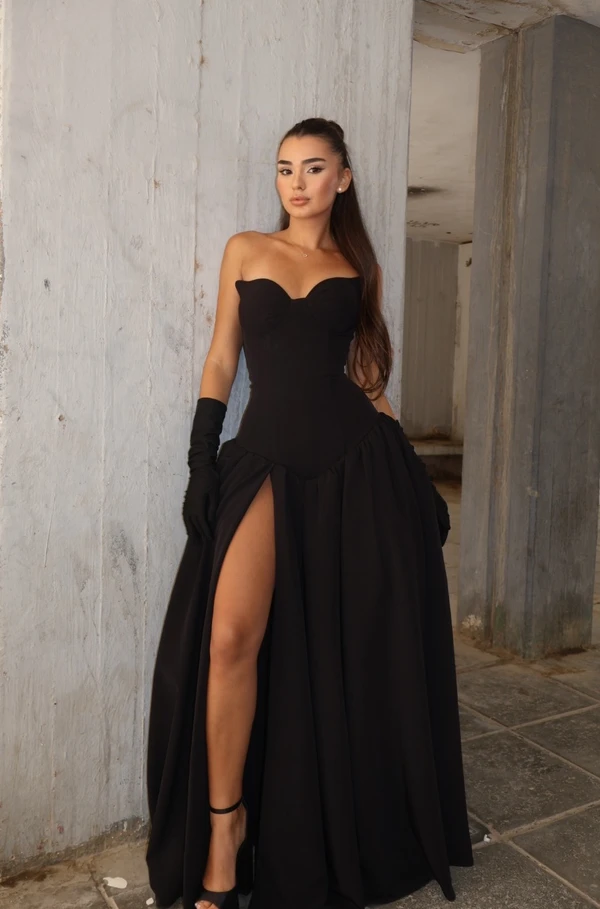 שמלת מחוך שחורה מחורזת