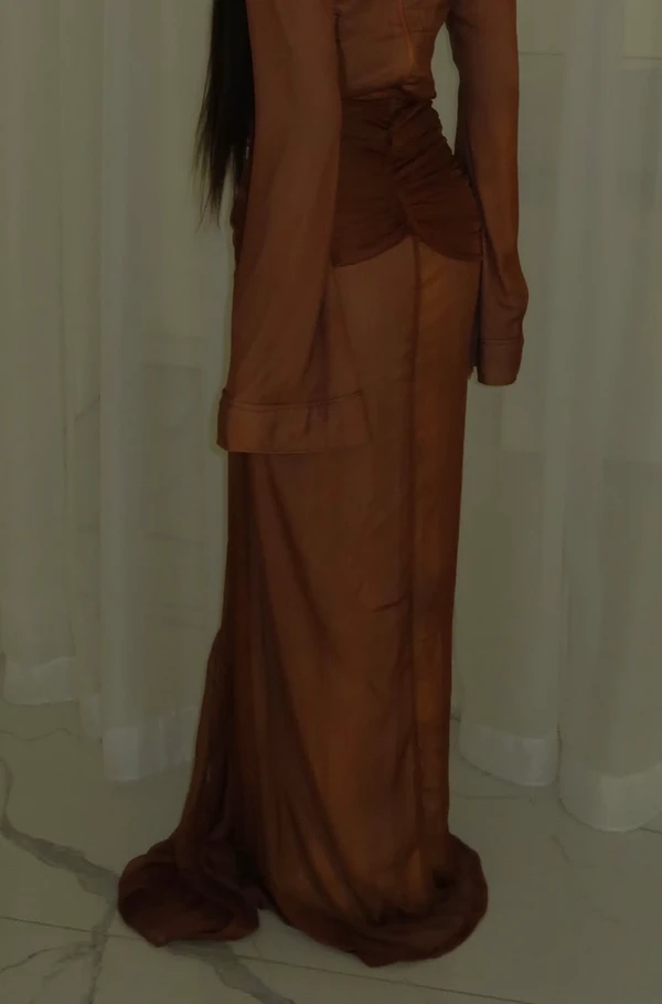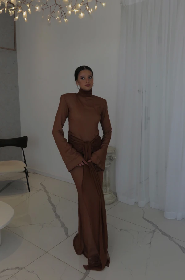שמלה צנועה ואצילית מבד שיפון עם בטנה מתחתיו לאורך כל השמלה האוטמת את הבד שלא יהיה שקוף🫶🏼