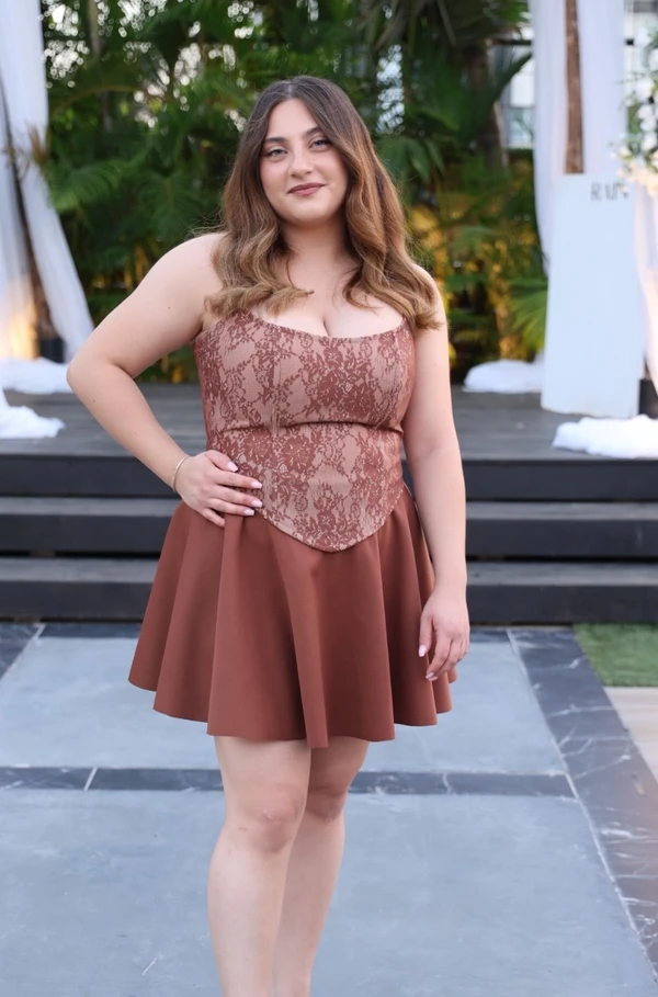 שמלת ערב, מחוך תחרה וחצאית קלוש מיני עם קשירות בגב מושלמת! ניתן להצר