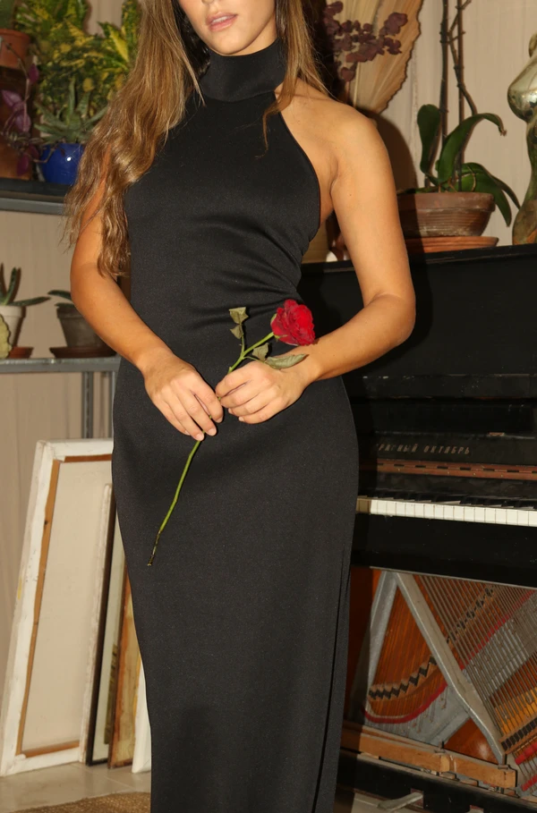 שמלת מקסי קולר שחורה מבד מחטב מגיעה ב2 מידות ניתן להצר ולהרחיב