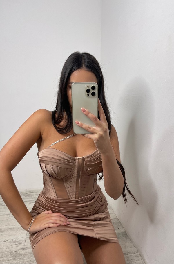 סט מחוך וחצאית מבד תחרה חום מושלם, קאפ שמתאים לכל מיני מידות ניתן לעשות שינויים/ להוסיף חצאית ארוכנ