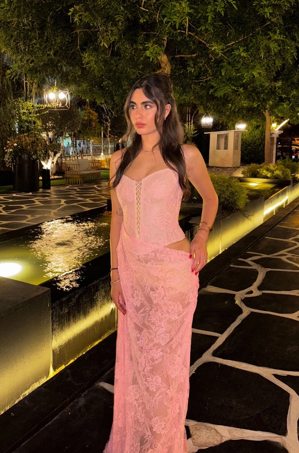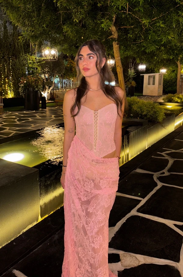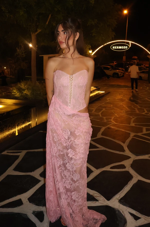 שמלת תחרה ורודה