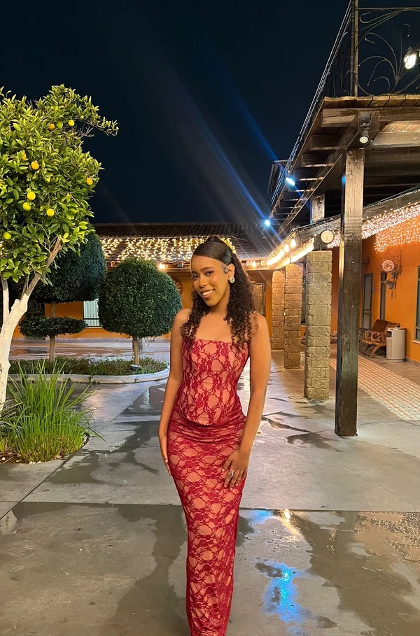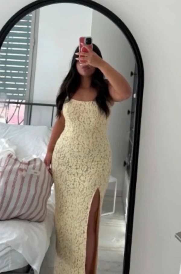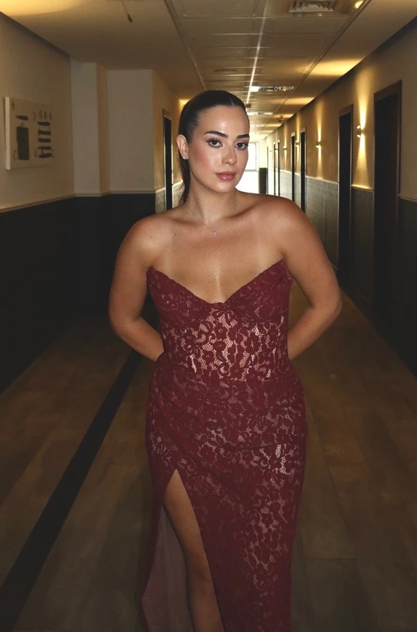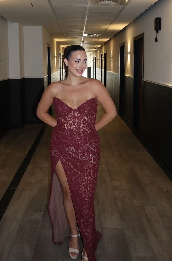 שמלת ערב מקסי מבד תחרה גפיור בורדו