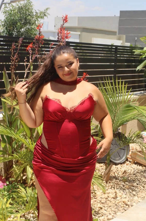 שמלת ערב אדומה מיוחדת במינה💃 ניתן לשנות את המבנה בהתאמה לגודל החזה.