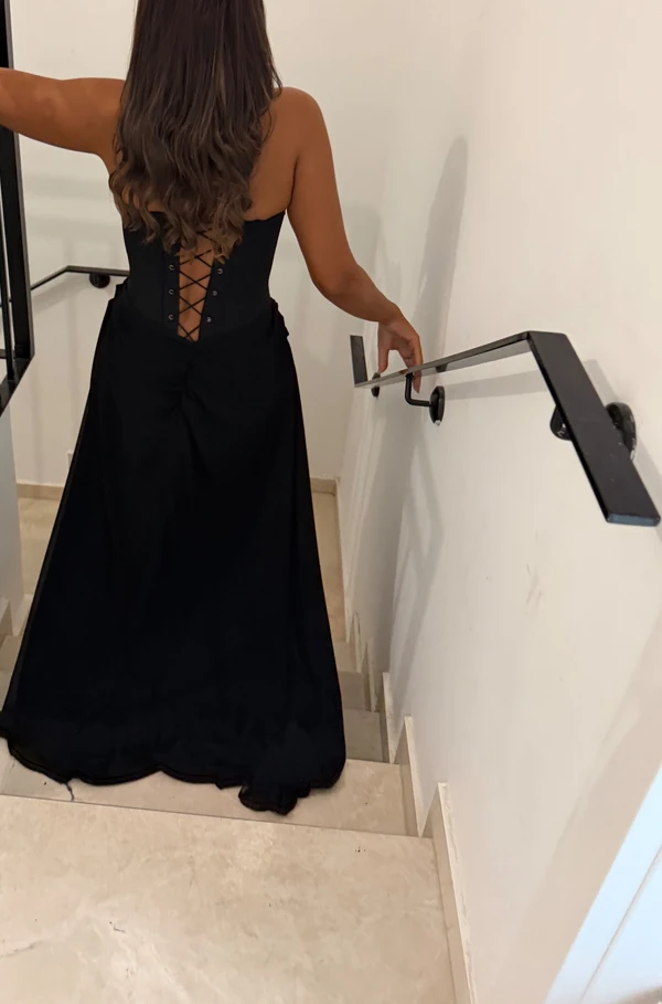 שמלת ערב מחוך שניי חלקים , ניתן להחליף לחצאית קצרה מחוך מחטב בטירוף ! כאפים מפרחים שחורים