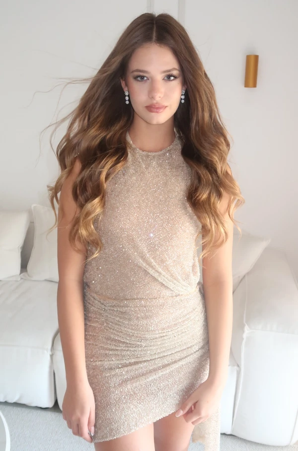 שמלת מיני מושלמת עם גב פתוח, מורכבת משני חלקים