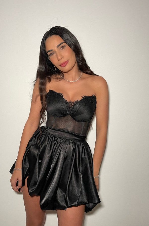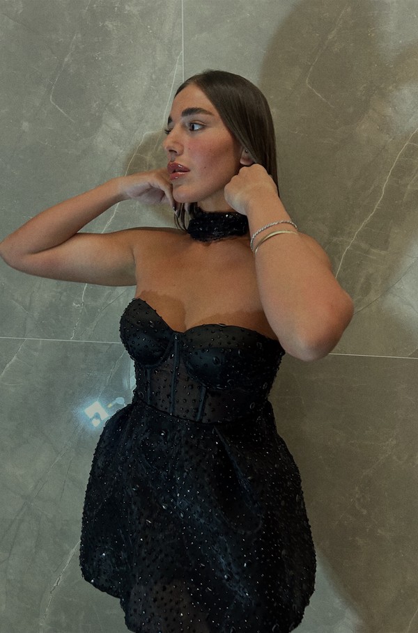 שמלת מיני עם מחוך תחרה ארוך וכפפות